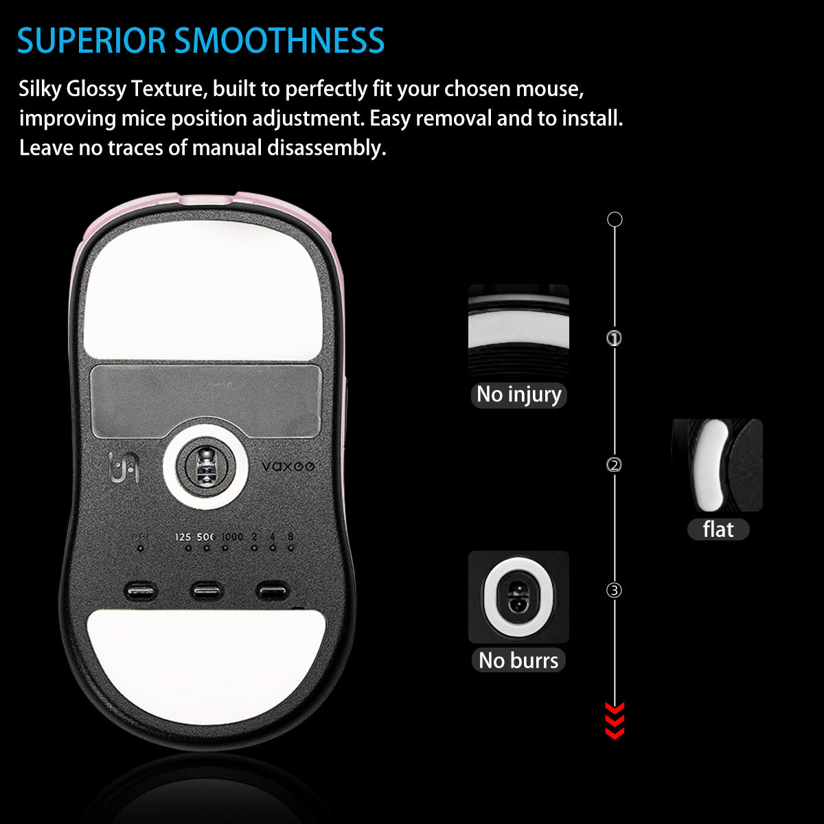 Secure Attachment with 3M Brand Adhesive: These skates use 3M Brand adhesive to ensure they stay securely attached to your mouse without detaching or shifting. Caution: Do not repeatedly stick and peel off during use.